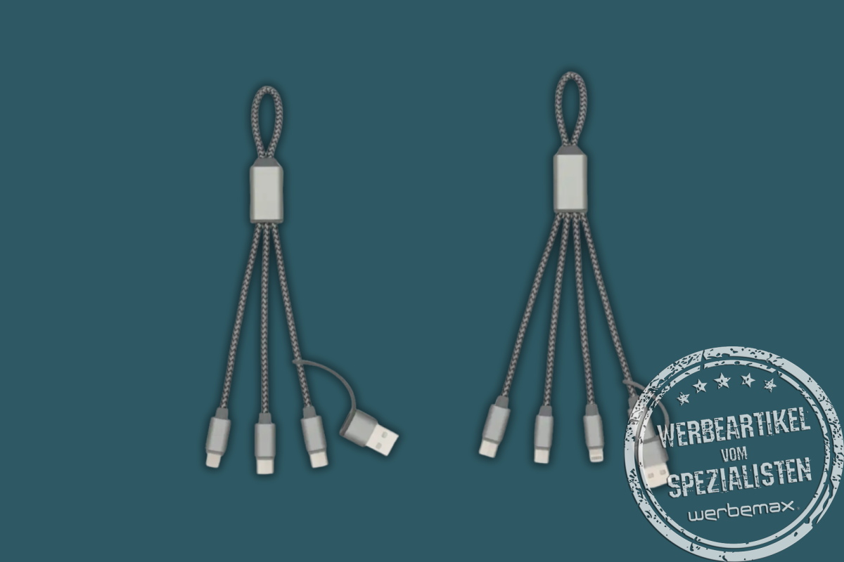 Das kompakte Multi-Charging-Gadget TRIDENT 2 Ladekabel ist der perfekte Alltagshelfer. Es besteht aus einer Aluminiumbasis und einem verstärkten Nylongeflecht und ist mit USB-A-, Typ-C- und Lightning-Anschlüssen kompatibel. Egal ob im Homeoffice, unterwegs oder auf Reisen – mit mehreren Anschlüssen und stilvollem Design ein praktisches Geschenk mit hoher Markenwirkung.
