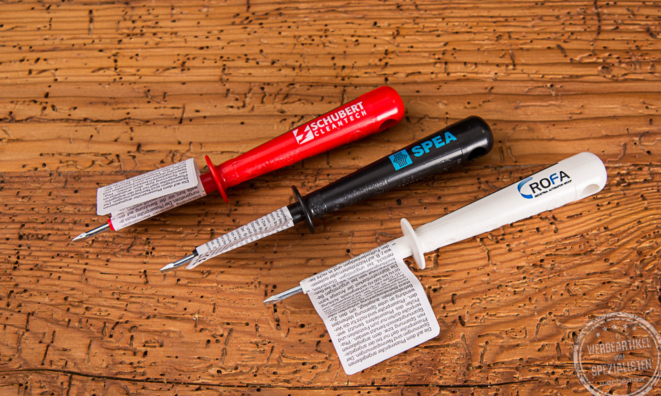 Der Phasenprüfer ist klein, praktisch und täglich im Einsatz – das macht ihn zum perfekten Werbegeschenk für Handwerker, Elektriker und technisch versierte Zielgruppen. Als bedruckbares Werkzeug signalisiert er Wertschätzung und bietet gleichzeitig eine dauerhafte Sichtbarkeit Ihrer Marke im beruflichen Alltag.