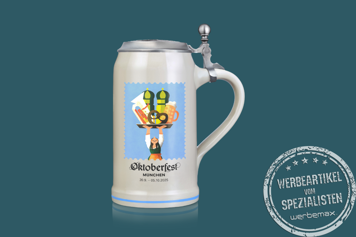Den offiziellen Oktoberfest Sammlerkrug 2025 gibt es auch ohne Zinndeckel. Der traditionelle Krug begeistert mit echtem Wiesn-Charme und traditioneller Handwerkskunst. Gefertigt aus salzglasiertem Steinzeug und veredelt mit dem offiziellen Oktoberfest-Motiv 2025, ist der 1,0-Liter-Krug ein hochwertiges Sammlerstück für Fans der bayerischen Bierkultur. Mit einem Gewicht von ca. 1.150 g und einer Höhe von 210 mm liegt er schwer in der Hand und steht für echte Qualität. Der limitierte Krug ist das ideale Werbegeschenk für Kunden, Mitarbeiter oder Firmenfeiern mit Oktoberfest-Flair. Mindestmenge: 24 Stück, verpackt in 6er-Kartons. Lieferzeit: ca. 2–3 Wochen nach Freigabe – nur solange der Vorrat reicht. Hinweis: Dieser Artikel ist im Vorverkauf – der Versand erfolgt ab dem 01.09.2025 in der Reihenfolge des Bestelleingangs.