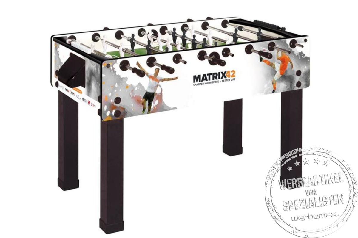 Ein bedruckter Tischkicker ist weit mehr als nur ein Spielgerät – er steht für Teamwork, Spaß und Dynamik! Ob im Büro, auf Messen oder als Highlight auf dem nächsten Firmen-Event – ein individuell bedruckter Tischkicker bringt Menschen zusammen und sorgt für eine langfristige Markenpräsenz.