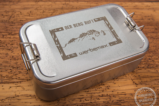 Details: Lunchbox als Retro-Brotzeitdose für unterwegs mit Ihrem Logo