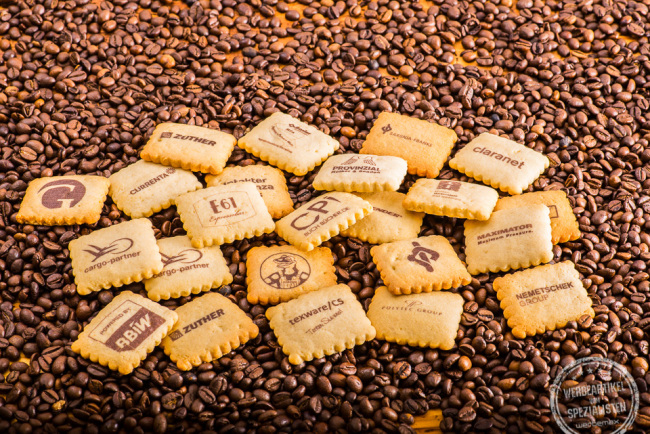 Details: Logokekse einzelverpackt als süßer Messesnack
