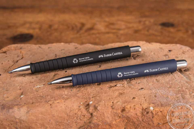 Das Topsellermodell der Tradtionsmarke Faber-Castell ist der bekannte Poly Ball mit der markanten ergonomischen Griffzone. Die Dreikant-Griffzone sorgt für ein angenehmes Schreibgefühl. Das Modell Poly Ball gibt es nun auch mit Recycling-Kunststoff. Die extra weiche Großraummine XB von Faber Castell wird Sie überzeugen. Das Reycling-Modell gibt es in den Standardfarben blau und schwarz. Das Modell Polyball wird gerne von Unternehmen als hochwertiges Markenschreibgerät für besondere Anlässe, wie Übergabe durch Geschäftsführung, bei Seminaren und Tagungen, bei Kundenveranstaltungen und als besonderes Kundengeschenk z.B. bei Vertragsunterzeichnung eingesetzt. Die geringe Mindestmenge von 250 Stück ist auch nochmals ein großer Vorteil. Für unter 3 EUR erhalten Sie einen Markenartikel als Werbeartikel und profitieren vom Imagetransfer der bekannten Marke Faber-Castell.