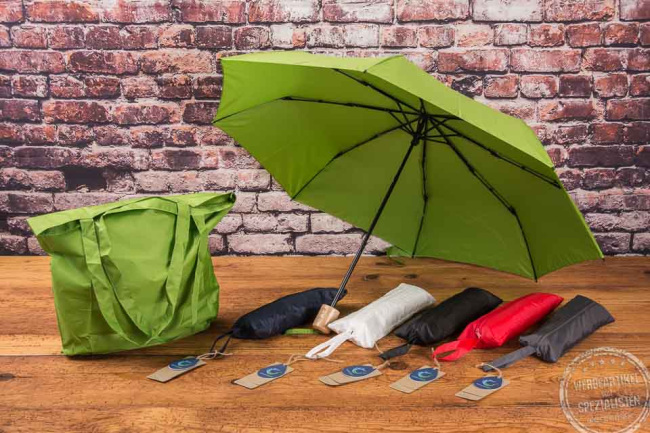 Nachhaltiger Regenschirm mit Einkaufstasche