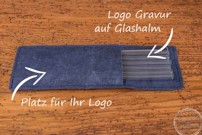 Werbeanbringung: Glasstrohhalme im Set mit Logo ab 100 Stück
