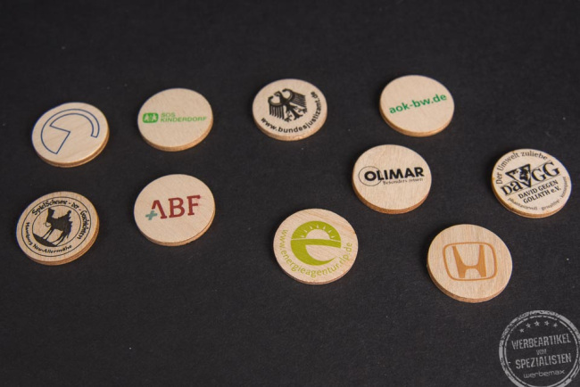 Details: Ihr Logo auf dem Einkaufswagenchip aus Holz