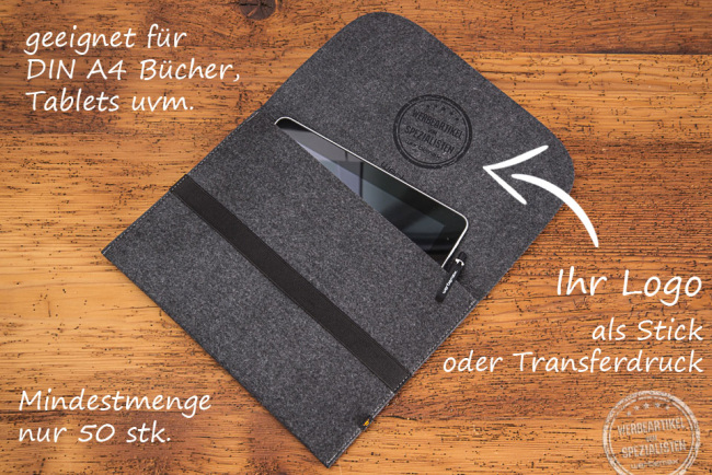 Werbeanbringung: recycelte Mappe aus Filz als Werbeartikel