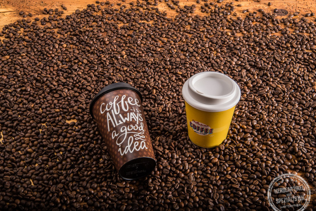 Werbeanbringung: Kaffee to go Becher mit großer Druckfläche