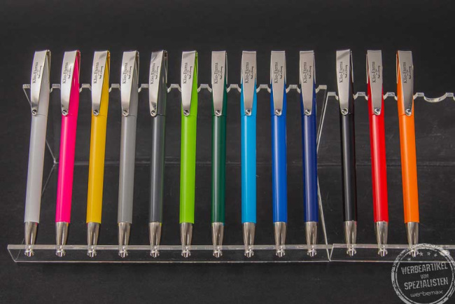 Werbeanbringung: Klio Kugelschreiber mit Logo bedrucken