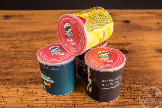 Werbeanbringung: Chips Pringles mit 4c-Euroskala bedruckter Banderole