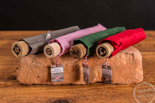 Erhältlich in sieben Farben und auf Wunsch auch individuell eingefärbt oder mit All-Over-Print, ist der Alpenland Pencil ideal für Tourismusbetriebe, Hotels, Souvenirshops oder Unternehmen mit internationalen Gästen. Dank seines charmanten Designs und der langlebigen Qualität eignet sich der kompakte Taschenschirm auch hervorragend als Geschenk für Mitarbeiter, Reisende oder Kunden, die Wert auf Stil und Funktion legen.