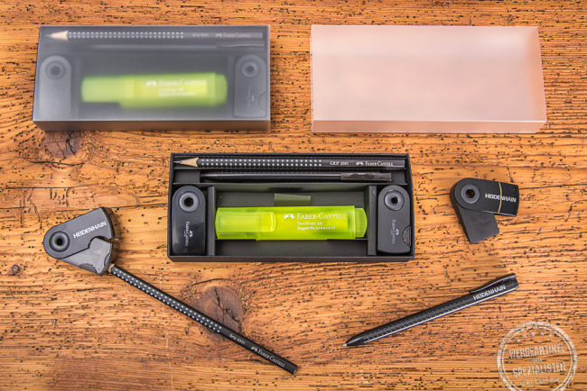 Ein Markenartikel unter 10 EUR ist immer ein wertiges Präsent. Mit dem Office-Set von Faber Castell haben Sie gleich fünf Markenartikel in einem Set. Die praktischen Schreibhilfen für den Alltag sind sicherlich lange im Einsatz. Der Druckkugelschreiber Grip 2022 bietet dokumentenechtes Schreiben und die Grippunkte sorgen für sicheren Halt. Auch beim Bleistift Grip 2001 überzeugt die ergonomische Dreiecksform. Der langlebige Radierer und Spitzer in Markenqualität wird dem Beschenkten ein treuer Begleiter sein, ebenso der Textmarker mit Superleuchtkraft. Dieser ist in fünf Farben (gelb, orange, pink, blau, grün) verfügbar und kann je Unternehmensfarbe ausgetauscht werden. Das Set gibt es standardgemäß mit schwarzen Schreibutensilien, aber auch wahlbar in weiß. Der 1-farbige Logoaufdruck ist bei 4 von 5 Schreibtischhilfen bereits inklusive - nämlich auf dem Kugelschreiber, dem Spitzer, dem Radierer und dem Textliner. Die schöne Übergabebox mit dem transluzenten Schuber eignet sich bereits perfekt als Geschenkverpackung. Wer jedoch noch eine zusätzliche Botschaft platzieren möchte, kann den Schuber durch einen indiv. Papierschuber mit 4-farbigem Druck ersetzen (ab 100 St.). Das Office-Set wird von unseren Kunden oftmals als Kontaktgeschenk anstatt hochwertiger Schreibgeräte eingesetzt, aber auch bei Veranstaltungen und Tagungen als Gastgeschenk. Gerade für Empfänger im Ausland hat Faber-Castell als deutsche Marke eine große Stahlkraft und Bekanntheit.