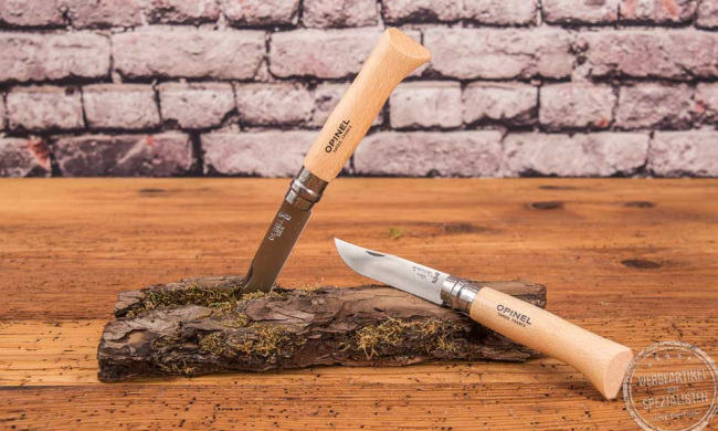 Heftlänge: 11 cm, Klingenlänge 8,5 cm, Länge geöffnet: 19,5 cm bei Opinel N°8 (Topseller)