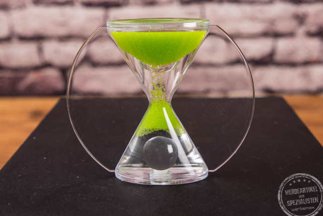 Die Paradox Sanduhren werden in Deutschland per Hand befüllt und versiegelt. Es ist ein qualitativ hochwertiges Produkt made in germany, langlebig und dadurch auch nachhaltig. Der AHA-Effekt ist ein Hingucker. Denn der von unten nach oben laufende Sand macht neugierig und somit den Werbeartikel Sanduhr auch wirksam. Die Laufzeiten können je Modell Zeiten von 2 bis 45 Minuten abdecken. Durch Aufdruck eines Slogans oder die persönliche Übergabe wird die Sanduhr zu einem starken Kommunikationsartikel. Ob im Außendienst, als Mailingartikel oder auf Messen, mit der Paradox Sand-Uhr sorgen Sie schnell für Gesprächsstoff und Aufmerksamkeit. Sie können die Sanduhren auch perfekt zum Erklären Ihrer Dienstleistungen und Produkte nutzen, z.B. Fließgeschwindigkeit von Granulat oder Öle und vieles mehr. Aufwertung erhält die Sanduhr durch Echt-Holzeinsätze. Anstatt Sandkörner können auch kleine farbige Glaskügelchen eingefüllt werden, die langsam klassisch von oben nach unten rieseln (#20990 Falling Pearls).