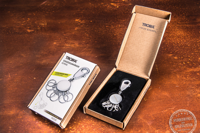 Werbeanbringung: Innovativer Schlüsselanhänger von Troika mit Gravur