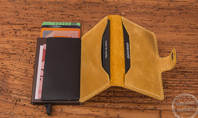 Designs: Es stehen eine große Auswahl an verschiedenen Stilen und Farbvarianten zur Verfügung - blättern Sie dazu gerne im Gesamt-Katalog von SECRID, den Sie in unserem Blogbeitrag finden. Unsere Empfehlung ist schlichte das MiniWallet im schlichten Original Black.