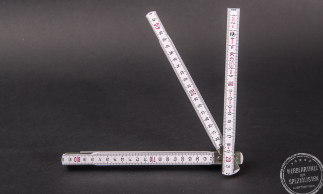 Ein Gliedermaßstab ist ein ideales Werbemittel und sollte in keinem Haushalt fehlen. Das beliebte Messwerkzeug hat einen hohen praktischen Nutzen von langer Dauer. Oft ist der Gliedermaßstab über Jahrzehnte im Einsatz. So lange Ihr Empfänger den Maßstab verwendet, so lange entfaltet sich auch die Werbewirkung für Ihr Unternehmen. Einsatzzwecke zur Übergabe gibt es viele. Sie können den Meterstab als Grundausstattung/Onboarding-Geschenk personalisiert an Ihre Mitarbeiter ausgeben. Oder als Kindermesslatte an frisch gebackene Eltern in Ihrem Unternehmen. Bedruckt werden kann der Meterstab auf dem Anfangsglied oben, auf dem Anfangsglied mittig und auf den Seitenflächen.