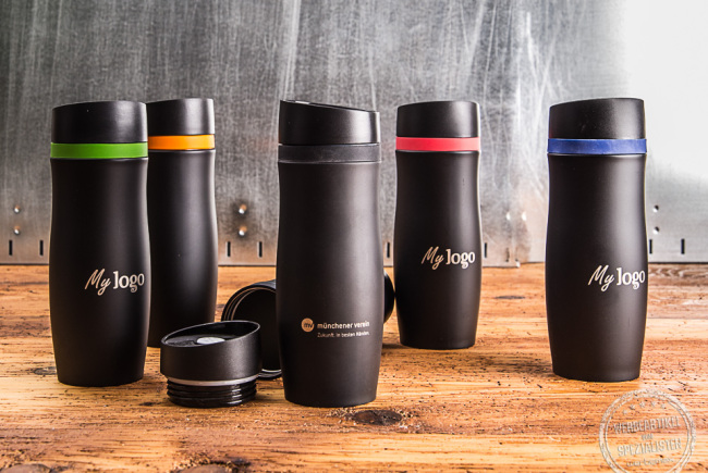 Werbeanbringung: Logo Gravur auf Thermobecher