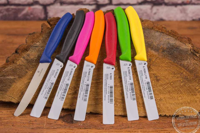 Das Tomaten- und Tafelmesser vom Schweizer Markenhersteller Victorinox ist mit extra scharfem Wellenschliff und ergonomischen Griff ausgestattet. Es eignet sich perfekt zum Schneiden von jeglichem Obst, Gemüse, Käse- oder Wurstwaren. Das leichte Messer mit buntem Griff wird zu 100% in der Schweiz hergestellt und ist spülmaschinengeeignet. Bei der Farbe des Griffs, können Sie aus 7 Standardfarben auswählen. Die Klinge des Messers kann durch Ätzung mit Ihrem Logo veredelt werden. Dabei erscheint die Veredelung in anthrazit/dunkelgrau und zeichnet sich durch eine hohe Haltbarkeit aus. Ein Victorinox Gemüsemesser sollte in keiner Küche fehlen. Nutzen Sie sie daher die praktischen Messer, um bei Ihren Kunden dauerhaft im Gedächtnis zu bleiben. Sie können das Messer beispielsweise in der Gastronomie und Hotellerie durch Ihren Außendienst als Besuchsgeschenk bei Köchen und Gastronomen verteilen lassen. Es eignet sich aber auch als idealer Zugabeartikel im Einzelhandel. Das Tomatenmesser gibt es auch als 3-teiliges Set mit zwei unterschiedliche Gemüsmesser (#6.7116.32) sowie mit einer klappbaren Klinge für unterwegs (#6.7833.F).