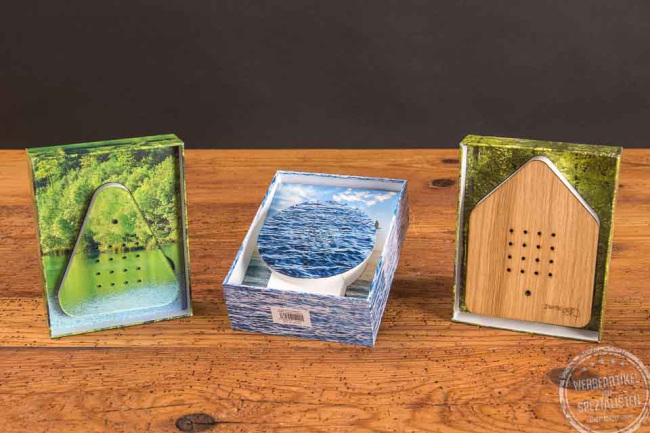 Abmessungen: Zwitscherbox 110 x 145 x 35 mm / Lakesidebox 110 x 118 x 28 mm / Oceanbox 108 x 115 x 50 mm